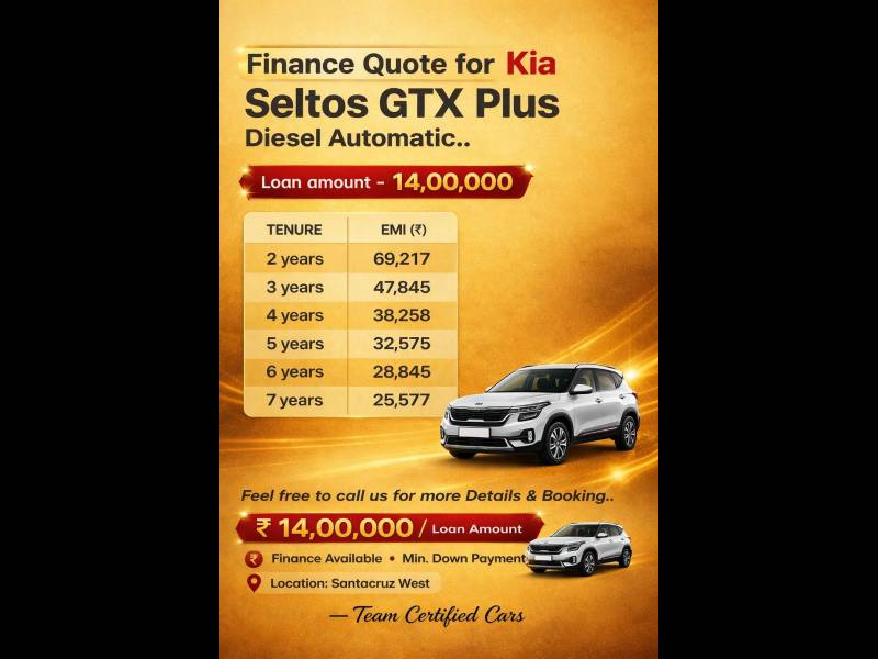 Finance facility available with minimum down payment of 1,49,000 only